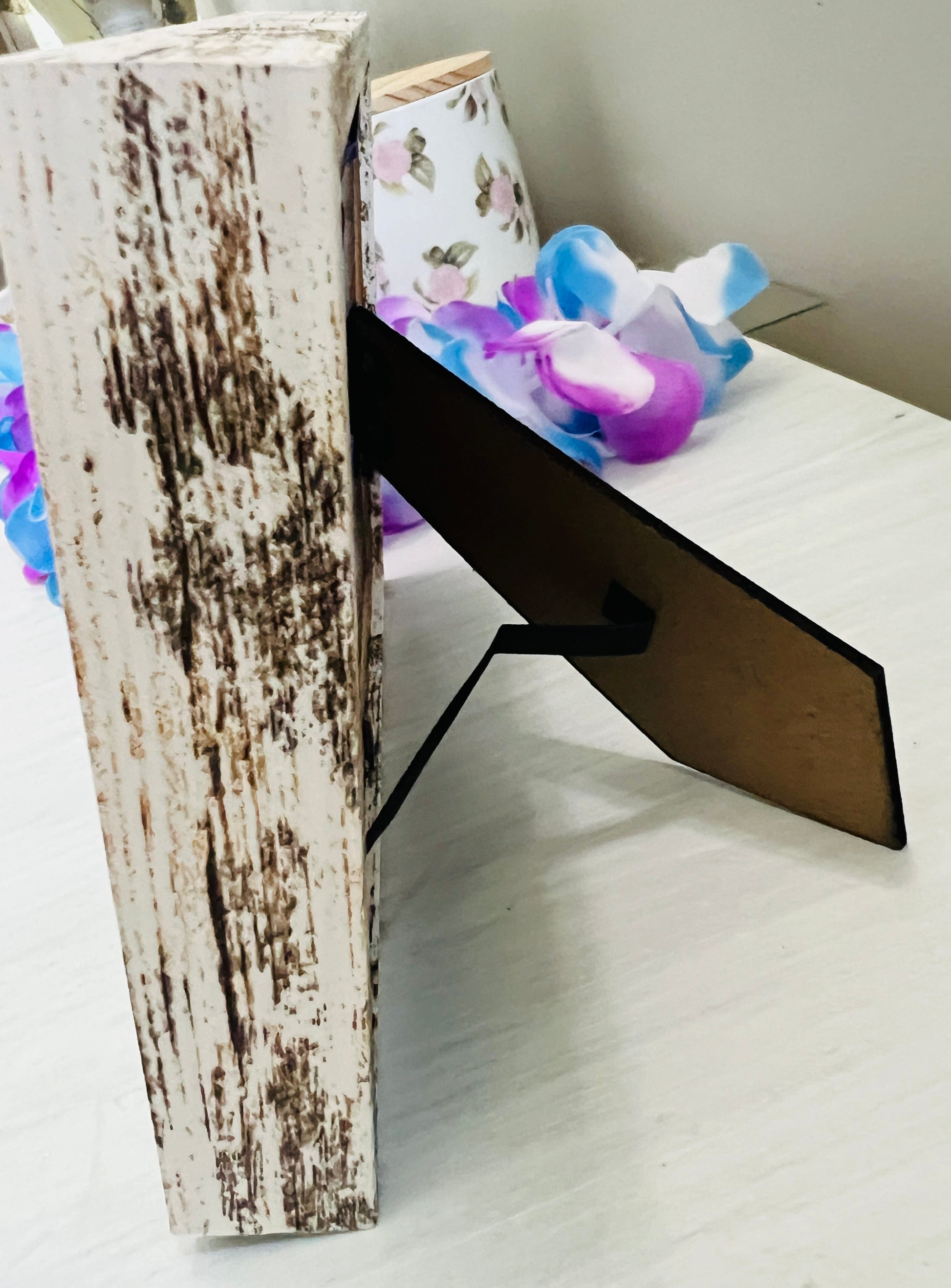 - 5” x 7” White distressed shadow box with white mat - Open, k no o glass orioox